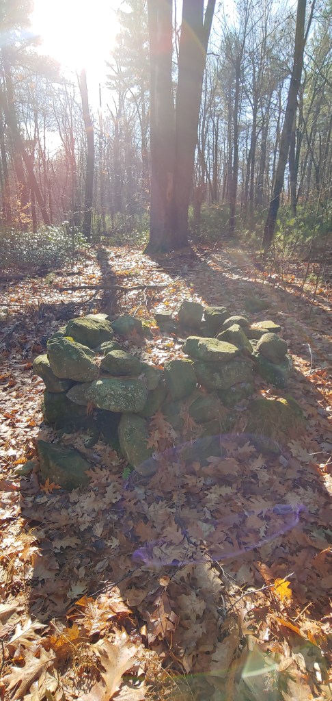 Yesterday, I got back into the woods. I suspect that it is part of the reason of the reflection and peace that is felt today. I found a location that is part of a town forest yet, it is not on any map. There are no real records of it. The town was never formally named. No one really knows who the residents were. We know it once existed from what was physically left behind and the stories that are infrequently whispered. It is said that the land may have been given to veterans from the French and Indian War and later the Revolutionary War when they returned home. Some say the poor and unwanted took the land for themselves, wanting a place of their own. The residents tried many times to be annexed by the surrounding towns, but were always denied. They were too far out in the wilderness and it seemed no one wanted to have any part of them. There are no recorded explanations of why the famers eventually left their fields. We only know that they did, maybe around the time of the 1830’s to 1850’s. No one returned to this tiny and faded village. The old and long forgotten fieldstone foundations of this glimmer of a farming community are all that is physically left. It is the town without a name, in a place that society did not want, in a time that has been forgotten… well, almost forgotten.