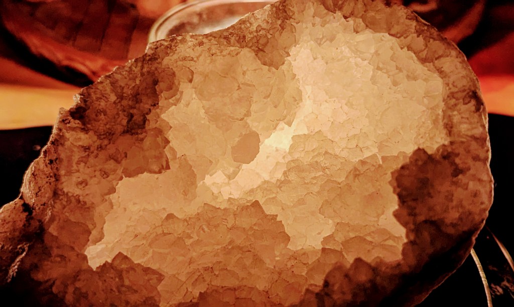 At the end of the path, we stand before a doorway to a large cavern. Candlelight offers a welcoming glow. The flame’s light reflects upon the crystals that line its walls and ceiling revealing a sea of stars. In the center, we see the Goddess Brigid. Now awake, she gently stirs the powers within the Earth, preparing for the ascent back into the world to bring Spring’s life tide to us.