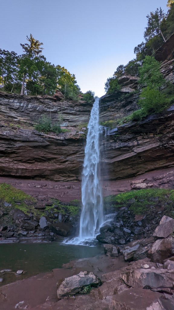 Thoughts moved through my mind as they often do in the woods. Weaving their way through memories and expectations for myself, they were difficult to ignore. I know I can be hard on myself in a lot of areas. Maybe there are some places that I am overlooking. Names, labels, and ties are bound to me. Some have no business with me anymore, yet they bubbled to my surface anyway, resting upon my heart and shoulders. I could even feel a tightness in my throat from the ghosts of names that I spat at myself. I clung to the reddish-brown rocks in the wall to help stabilize me since the ground was slick from the creeping mist of the waterfall that was only steps away now. The silvery mist greeted me as the Guardian of the Falls. Honestly, I think it was a true guardian as I politely asked to enter that sacred space as a witch. My skin, hair, and clothing becoming wet in its breath. I was baptized in the sacred water after the difficult trial to reach my destination. I was granted access. As I slowly turned the corner, everything stopped. The pain in my muscles, the ringing in my ears, the weight upon my shoulders – it all dropped as the powerful breath from the falling water hit me. All the noise and labels melted from me. It just did not matter anymore. The trivial trappings of the fragile human ego fell away in that moment, leaving me feeling a little raw and vulnerable as I stood before the immense power of the natural land. It invited me to commune. This, like many other experiences with Nature will be forever etched upon my soul. I am humbled and moved by that.